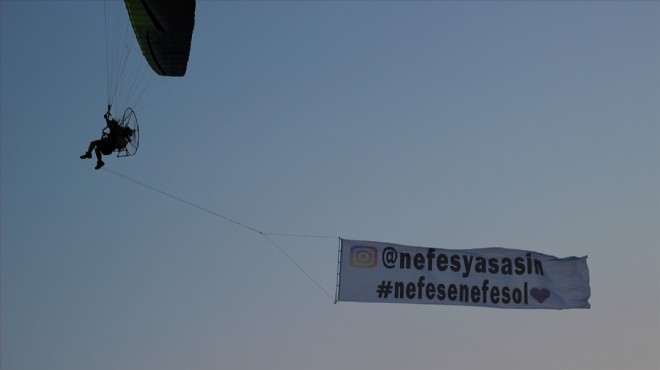 Pilotlar Metin Pehlivan, Armağan Kemal Akpaklar ve Cosmin Şerban, Körfez üzerinde yaptıkları uçuş sırasında "Nefes yaşasın, Nefes'e sen nefes ol" yazılı pankart açtı.