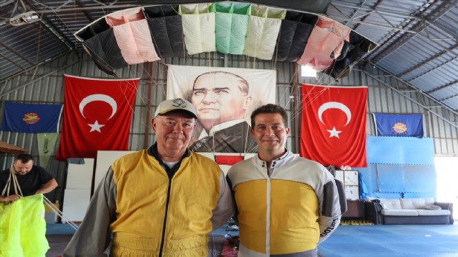 İzmir'de paraşütle atlama tutkunu 72 yaşındaki Ömer Erdem ile 43 yaşındaki oğlu, 18 yıldır gökyüzünde birlikte heyecan yaşıyor.