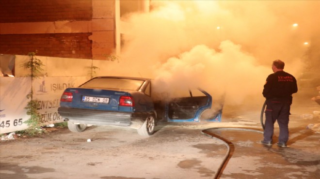 Soğukkuyu Mahallesi'nde, İlker İşlek'e (41) ait, park halindeki 35 DCN 08 plakalı otomobilde henüz bilinmeyen nedenle yangın çıktı.