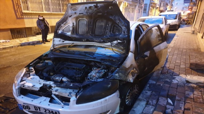İzmir'in Bayraklı ilçesinde kundaklanan otomobilde hasar meydana geldi.