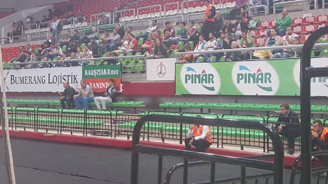 Futbolda yeni puan silme cezası alınmaması için taraftarın eşi görülmemiş bir kampanya yürüterek kulübün 9 puanını kurtardığı Karşıyaka'da basketbolda yönetimin yaptığı destek organizasyonu ise fiyaskoyla sonuçlandı. Taraftarın kampanyasına destek olmamakla suçlanıp istifaya davet edilen yönetim, Ewe Baskets'le Almanya'da oynanan maç için Mustafa Kemal Atatürk Karşıyaka Spor Salonu'na dev ekran kurdurdu. Maç, bu ekrandan yayınlanırken kulübe destek olmak için salona giriş ücreti 20 TL olarak belirlendi. Maçı tribünde yalnız 50 civarında kişi izlerken salonda görev yapan özel güvenlik şirketi mensuplarının sayısı seyircilerden fazlaydı. (DHA)