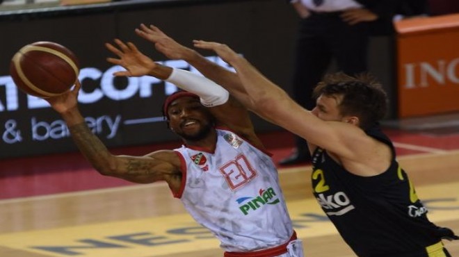 Pınar Karşıyaka maça M'Baye ve Henry'nin 3 sayılık basketleriyle 10'a 4'lük seri yaparak başladı. Fenerbahçe, Melih'in üçlükleriyle farkın açılmasına izin vermedi. İlk periyot ev sahibi ekipten Yunus'un turnikesiyle 18-14 sonuçlandı.