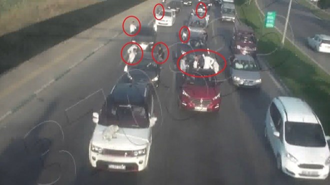 Bursa'nın Yıldırım ilçesine bağlı 11 Eylül Bulvarı Millet Mahallesi'nde, trafikte tehlikeli şekilde seyreden bir düğün konvoyu yolu kapattı.