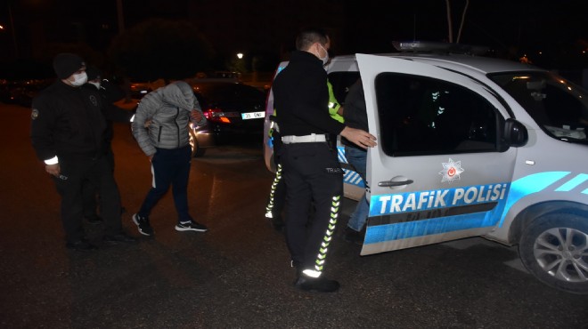 İzmir Emniyet Müdürlüğü Trafik Denetleme Şubesi ekipleri, sokağa çıkma kısıtlaması kapsamında, Karşıyaka ilçesinde saat 01.00 sıralarında denetim başlattı. Polis ekipleri, Yeni Girne Caddesi'nde bir otomobili şüphe üzerine durdurmak istedi. Trafik polisinin 'dur' ihtarına uymayan 06 FY 812 plakalı sürücü kaçmaya başladı. Şüpheliler ile polis arasında başlayan kovalamaca, trafik polislerinin koordineli şekilde çalışmaları sonucu son buldu. Köşeye sıkışan otomobil sürücüsü ve otomobildeki 2 kişi, bu kez de aracı bırakarak yaya şekilde kaçmaya çalıştı. Ekiplerin müdahalesi ile 3 şüpheli kıskıvrak yakalandı. Gözaltına alınan şüpheliler, sorgulanmak üzere emniyete götürüldü. Yapılan kimlik sorgusunda, otomobil sürücüsünün B.M., otomobildeki kişilerin ise E.K. ve Ş.K. olduğu tespit edildi. Ş.K.'nin uyuşturucu ve uyarıcı madde üretme, uyuşturucu maddeyi satma ve sağlama suçundan hakkında kesinleşmiş 8 yıl 4 ay hapis cezası olduğu ortaya çıktı. Otomobil sürücüsü B.M.'ye yapılan uyuşturucu testinin de pozitif olduğu belirtildi. B.M., E.K. ve Ş.K.'ye sokağa çıkma kısıtlamasının yanı sıra çok sayıda trafik kuralını ihlalden toplam 14 bin 782 TL idari para cezası kesildi. Sağlık kontrolünden geçirilen şüphelilerin, öğle saatlerinde adliyeye sevk edileceği öğrenildi. Şüphelilerin kullandığı 06 FY 812 plakalı otomobil ise çekiciyle otoparka kaldırıldı. (DHA)