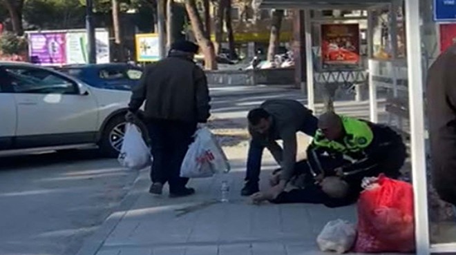 Tire ilçesinde otobüs durağında otururken bir anda yere düşüp, başını beton zemine çarpan ve dili boğazına kaçan Semayi Emirhor'a (79), ilk müdahaleyi olay yerinde bulunan polis memuru Murat Akbulut yaptı. Akbulut'un müdahalesiyle kurtulan Emirhor, hastaneye kaldırıldı.