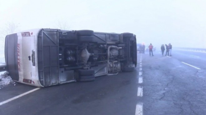 İstanbul’un Çatalca ilçesinde İstanbul Havaalanı'na polis memurlarını taşıyan midibüs buzlanma ve yoğun sisten dolayı devrildi.