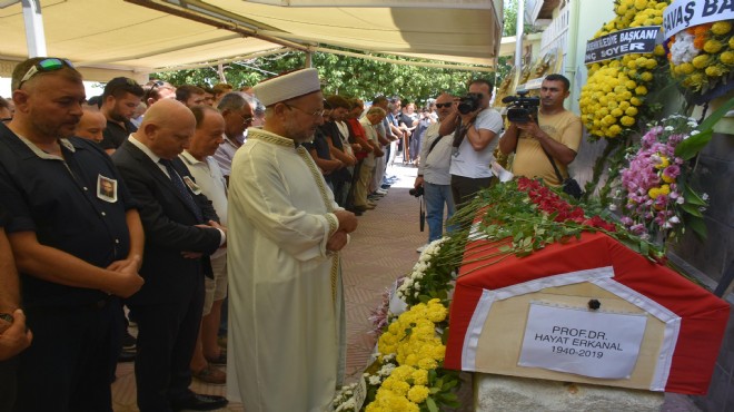 Törendeki konuşmaların ardından Prof. Dr. Hayat Erkanal'ın cenazesi, öğrencinin omzunda cenaze aracına konuldu, oradan da İskele Yahşibey Camisi'ne götürüldü, öğle vakti kılınan cenaze namazından sonra da Çeşmealtı Güvendik Mezarlığı'nda toprağa verildi.