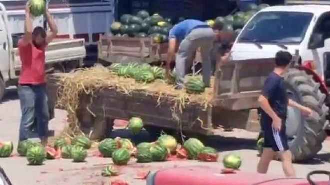 Sakarya'da toptancı son anda alımdan vazgeçince satmak istedikleri karpuzları yere atarak parçalayan 2 kişi hakkında işlem başlatıldı.
