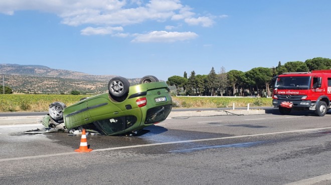 Halil Güvenç (24) idaresindeki 10 ACE 525 plakalı otomobil, İzmir- Çanakkale kara yolunun Kabakum mevkisinde sürücüsünün direksiyon hakimiyetini kaybetmesi sonucu refüje çarparak devrildi, sürüklenen otomobil karşı şeride geçerek durabildi.