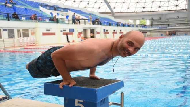 Karşıyaka Yüzme ve Su Sporları Kulübü'nün desteklediği engelli sporcu Berk Kamanlı, su altında tek nefeste kırdığı 50 metre yüzme rekorunu geçmek için İzmir'de kampa girdi.