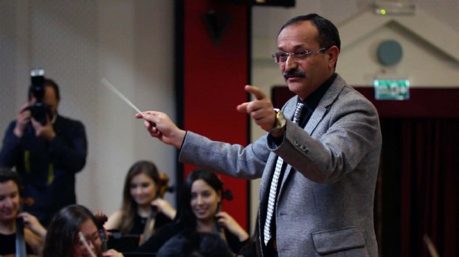 Prof. Dr. Çelik, üniversite yönetmeyi orkestra yönetmeye benzeten Konservatuvar Müdürü Prof. Ümit İşgörür'ün daveti üzerine sürpriz yapıp, eline şef batonunu eline alarak, sahneye çıktı.