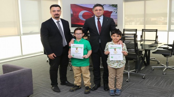 Uluslararası platformda Aliağa’yı başarıyla temsil eden öğrenciler ile Aliağa Robotik Kodlama Kişisel Gelişim Kursu müdürü Eren Çelikkıran’ı makamında ağırlayan Aliağa Belediye Başkanı Serkan Acar, öğrencileri tebrik ederek başarılarının devamını diledi.
