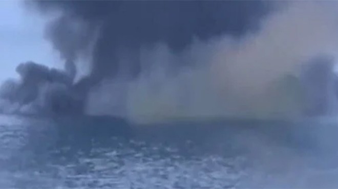 Görüntü de küçük bir teknenin ilerlerken açılan ateşle imha edildiği görülüyor.