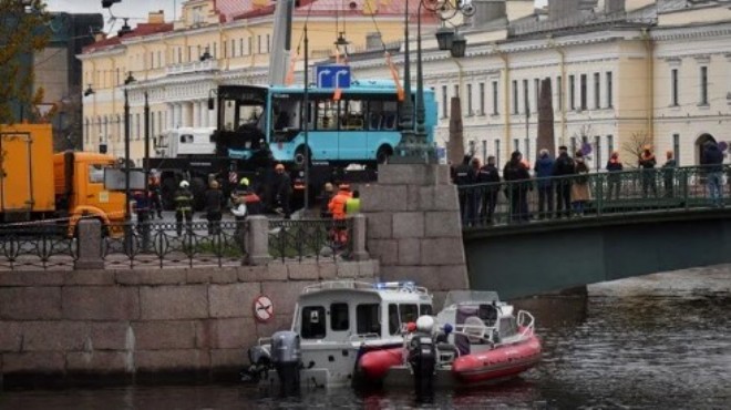 Rus haber ajansı Tass'a göre, kent merkezinde seyir halindeki otobüs, Moyka Nehri'ne düştü.