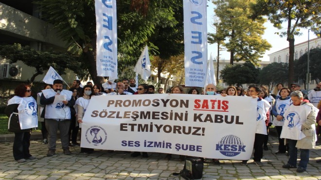 Sağlık çalışanlarının 30 bin banka promosyonu almasına yönelik anlaşmaya tepki gösteren SES İzmir Şube Eşbaşkanı Erkan Batmaz, “TÜİK’deki hesap çarşıya uymuyor, ülkemizde enflasyon canavarı var, aldığımız maaş yolda eriyor. Siz çocuk mu kandırıyorsunuz? Çalışan buna kanar mı? Sağlık müdürünü ziyaretimizde sağlık müdürüne, neyi bekliyorsunuz? Biran önce yıl dönmeden yeni ihale yapılsın dediğimizde ‘yeni yılda yeni zamlarla yapalım daha karlı oluruz’ demişti. Yeni yılda maaş zamları ile yapılacak iyi anlaşma bu mudur? Aylar önce kurumların 3 yıla 40 binli rakamlara anlaşma yapıldığına şahidiz. Sağlık Bakanlığı’nın anlaşmayı 3 yıllığına yaptığına şahidiz. Bu nasıl bir anlayıştır? Resmen yüzde 400 kar açıklayan bankalarla iletişiminiz, çalışanlardan daha mı önemli?” diye sordu.