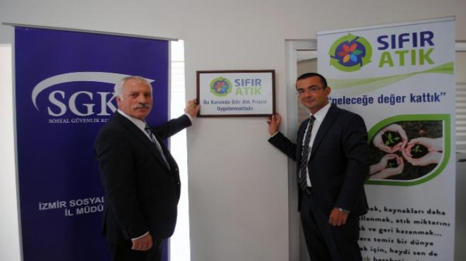 Çevre ve Şehircilik İl Müdürlüğü ile Sosyal Güvenlik Kurumu İzmir İl Müdürlüğü tarafından, 'Sıfır Atık Projesi'nin başlaması nedeniyle SGK Buca Yerleşkesi Konferans Salonu'nda toplantı düzenlendi. Toplantı sonrası, SGK Buca Yerleşkesi'ne, SGK İl Müdürü Ekrem Gülcemal ile Çevre ve Şehircilik İl Müdürü Selahattin Varan tarafından 'Sıfır Atık Projesi'nin uygulandığına dair yazı asıldı.