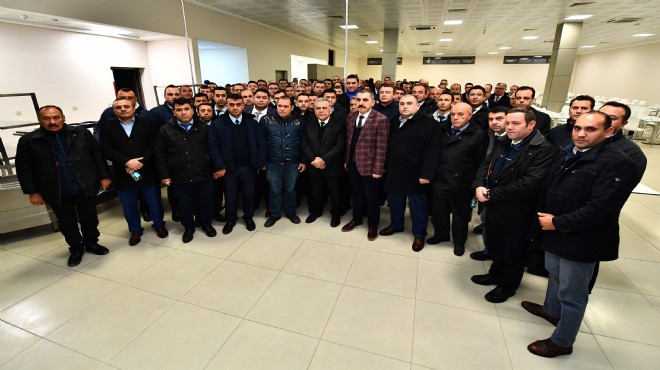 İzmir'deki toplu ulaşımın ana omurgasını oluşturan ESHOT şoförleri, güne Başkanları Aziz Kocaoğlu ile birlikte başladı. Sabah saat 05.30'da ESHOT'un Buca'daki Gediz Garajı'na giden İzmir Büyükşehir Belediye Başkanı, sefere çıkmaya hazırlanan şoförlerle birlikte gevrek-peynir yedi; sohbet etti. Onlara hitaben bir konuşma da yapan Kocaoğlu, "15 yıl birlikte yol yürüdük. Sıkıntılı dönemlerimiz oldu. Ama hep aynı samimiyetle ve iyi niyetle İzmir, İzmirliler ve belediyemiz için çalıştık. Hizmet için çırpındık. Hepinize ayrı ayrı teşekkür ediyorum" dedi.