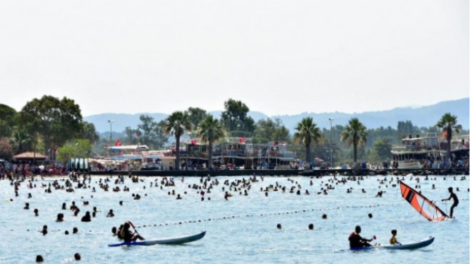 ?Hava sıcaklığının 38, deniz suyu sıcaklığının 27 derece ölçüldüğü mahallenin 4 bin olan nüfusu, 20 kat artarak 80 bine ulaştı.