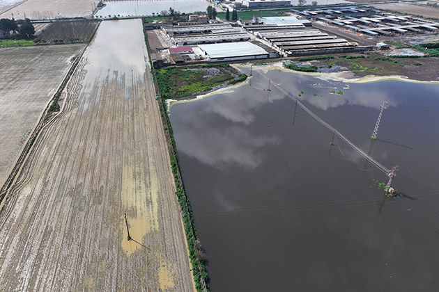 Bölgedeki bazı tarım arazileri ve meyve bahçeleri suyla kaplandı. Su altında kalan alanlar dronla görüntülendi.