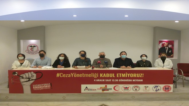 Cumhurbaşkanı Recep Tayyip Erdoğan’ın imzası ile 30 Haziran’da yayımlanan “Aile Hekimliği Sözleşme ve Ödeme Yönetmeliği”ne göre görevleriyle ilgili olarak sosyal medya paylaşımı yapan, tweet atan aile hekimine 50 ceza puanı kesilecek, basına üç kez izinsiz konuşan aile hekiminin sözleşmesi yenilenmeyecek. “Ceza yönetmeliği” olarak tanımlanan düzenlemeye yönelik tepkiler İstanbul ve İzmir başta olmak üzere çeşitli illerde iş bırakma eylemlerine dönüşürken, kentteki sağlık meslek örgütleri de konuya ilişkin basın açıklaması düzenledi. İzmir Tabip Odası’nda gerçekleşen toplantıda bir araya gelen İzmir Sağlık Platformu üyeleri, yönetmelik geri çekilinceye kadar mücadeleye devam edeceklerini vurguladılar ve 4 Aralık’ta Gündoğdu Meydanı’nda düzenlenecek “Ceza Yönetmeliğini Kabul Etmiyoruz” mitingi için çağrı yaptılar.