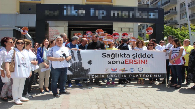 Doktora şiddet uygulanmasına tepki gösteren ve adli sürecin takipçisi olacaklarını belirten İzmir Tabip Odası ile İzmir Sağlık Platformu üyeleri, bugün tıp merkezinin önünde toplanıp basın açıklaması yaptı. ‘Sağlıkta şiddet sona ersin’ yazılı pankart taşıyan üyeler adına konuşan İzmir Tabip Odası Başkanı Funda Barlık Obuz şunları söyledi: