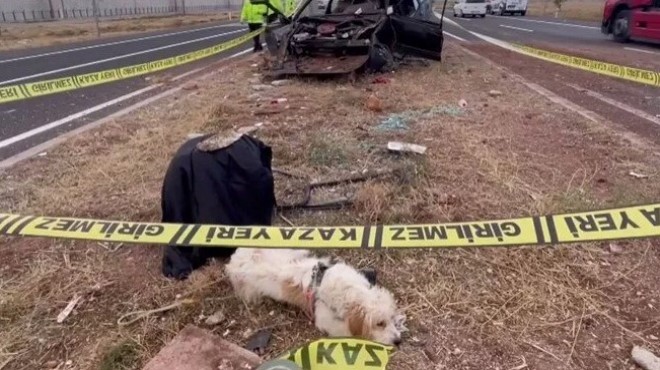 Araçtaki Altıparmak'ın köpeğinin kaza yerinden bir süre ayrılmadığı görüldü. (AA)