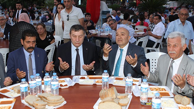 Gaziemir İlçe başkanlığının verdiği iftara yaklaşık 1500 vatandaş katılırken, iftarın hemen ardından milletvekili aday ları tek tek sahneye davet eden MHP Gaziemir İlçe Başkanı Köksal Koç, 24 Haziran'da yapılacak seçimlerde milletvekilleri için destek istedi.