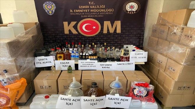 İzmir'de farklı tarihlerde düzenlenen 46 operasyonda sahte içki yapımında kullanılan 24 ton 441 litre etil alkol ele geçirildi, 4 şüpheli tutuklandı.