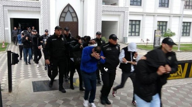 Kocaeli Emniyet Müdürlüğü’ne getirilen 24 şüpheli buradaki işlemlerinin ardından Gebze Adliyesi’ne sevk edildi. (DHA)