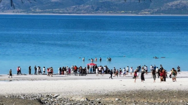 Denizli'den ailesiyle Salda Gölü Tabiat Parkı'na gelen İlayda Nur Kılıç, kardeşiyle girişin yasak olduğu yerden göle girdi.