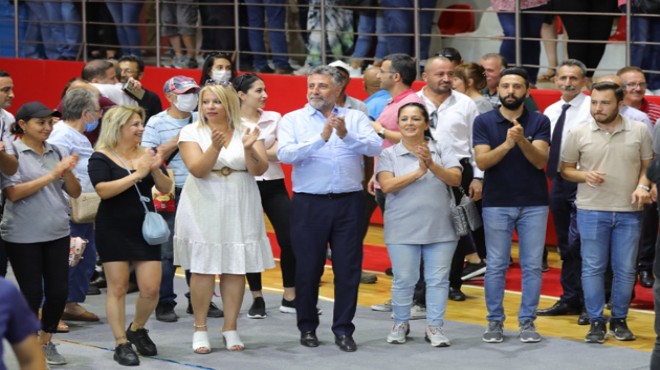 Mustafa Kemal Atatürk Spor Salonu’nda düzenlenen bayramlaşma törenine, Başkan Serdar Sandal, CHP İlçe Başkanı Didem Gültekin, sendika temsilcileri, meclis üyeleri, muhtarlar ve belediye çalışanları katıldı. Konuşmaların ve bayramlaşma töreninin ardından halaylar çekildi, oyunlar oynandı.