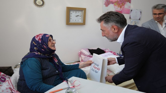 Nafiz Gürman Mahallesi’ndeki Şehit Asteğmen Adem Dertsiz Huzurevi’ni ziyaret eden Bayraklı Belediye Başkanı Serdar Sandal, sevinç ve güler yüzle karşılandı. Huzurevi sakinlerine çiçek ve hediye takdim eden Başkan Sandal, talep ve önerileri dinledi, çınarlarla sohbet etti. Başkan Sandal’a huzurevi müdürü İbrahim Aslan da eşlik etti.