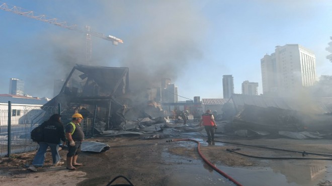 Bayraklı ilçesi Ozan Abay Caddesi'ndeki bir şantiyede, saat 15.00 sıralarında yangın çıktı.