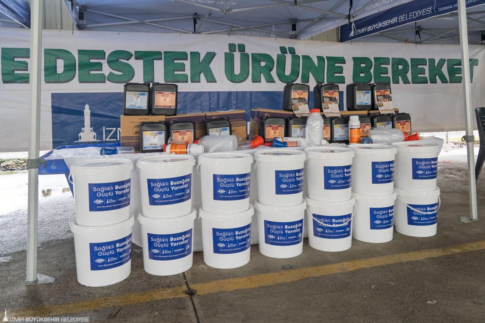 Kınık’ta başlatılan dağıtımlarda buzağıların hijyenini ve bağışıklığını artırmaya yönelik hazırlanan paketler çiftçilere ulaştırıldı.  Hazırlanan kitlerde biberon, emzik, göbek klipsi, bağışıklık sistemini destekleyici ağız pastası, sağım öncesi ve sonrası meme daldırma kabı, meme dezenfektanı, kova ve toz dezenfektana yer verildi. Türkiye’nin süt üretiminde lider kenti İzmir’de, Beydağ, Bayındır, Ödemiş, Tire, Kiraz başta olmak üzere büyükbaş hayvancılığın yoğun olduğu ilçelerdeki toplam 3 bin 500 çiftçiye buzağı kiti desteği sağlandı.