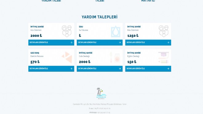 Su faturasından elektrik faturasına, kira ödemesinden eğitim desteğine kadar çok geniş bir kapsamda oluşturulan ihtiyaç listesine bir tıkla ulaşmak mümkün.