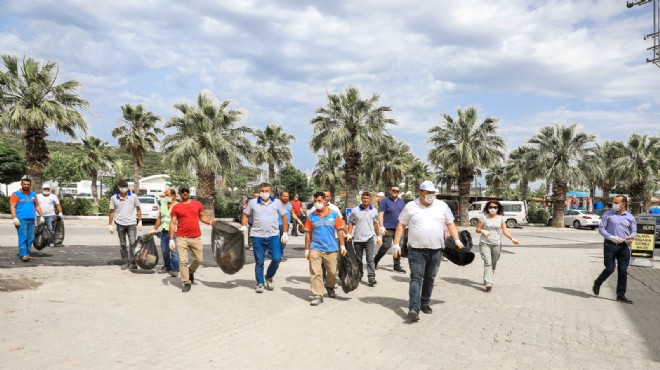 Seferihisar Belediye Başkanı İsmail Yetişkin öncülüğünde 16 ekibe bölünen belediye çalışanları, Seferihisar'ın tüm sokak ve sahillerini temizledi.