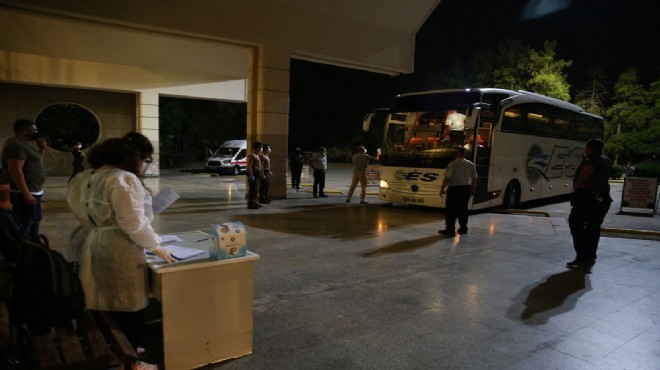 ?Kalan 15 yolcusuyla yine eskort eşliğinde Antalya Şehirlerarası Otobüs Terminali'ne gelen otobüs, ayrılan özel alana alındı. Bir ambulansın da hazır bulunduğu alanda, otobüsten tek tek indirilen yolcuların ateşi ölçüldü, iletişim bilgileri alındı.