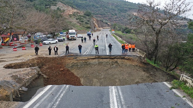 Sağanak nedeniyle Selçuk-Aydın kara yolunun Havutçu mevkisinde çökme meydana geldi.
