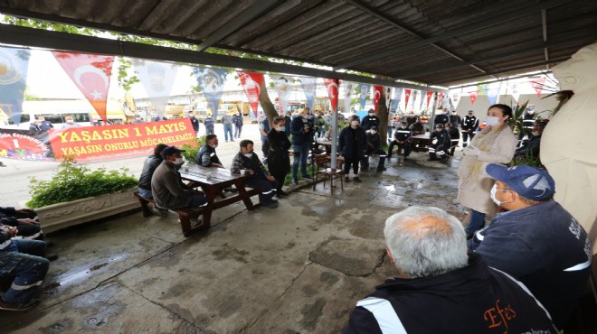 Başkan Sengel, Vasıtalar Amirliği’nde başlayan 1 Mayıs mesaisini Efes Selçuk Halk Pazarı, Sosyal Yardım İşleri Müdürlüğü, muhtarlıklar, belediye hizmet binası, Akıncılar Huzurevi, İzmir Büyükşehir Belediyesi İtfaiye Grubu, İzmir Büyükşehir Belediyesi Hizmet Binası ve İZSU çalışanlarıyla sürdürdü.