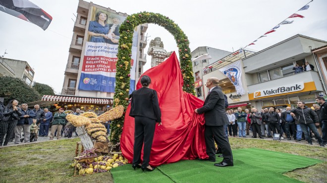 Efes Selçuk’un simgelerinden Artemis heykelinin 20 yıl önce bulunduğu yere yeniden konulması nedeniyle ayrı bir tören düzenlendi. Heykelin birebir bir kopyasının açılışında konuşan Tunç Soyer, 20 yıl önce kaldırılan heykelin, aynı yerde, yeniden kent meydanıyla buluşmasından dolayı heyecan duyduğunu belirtti. Soyer konuşmasında, “Bugün sadece Efes Selçuk için değil, tüm İzmir için çok önemli olan Güzel Artemis Heykeli’nin yeniden kent meydanıyla buluşması, hepimizi çok heyecanlandırıyor. Adına dünyanın 7 harikasından biri olan Artemis Tapınağı inşa edilen Efesli Artemis, Antik Efes’i bir dünya kenti yaparak zenginleşmesini sağlamış, bu coğrafyanın en önemli değerlerinden biridir” dedi. Artemis heykelinin kentin belleğinin bir parçası olduğuna dikkat çeken Filiz Ceritoğlu Sengel ise &ld quo;Artemis'i tekrar bu meydana dikelim ki herkes buranın Artemis'in bereketli elinin değdiği topraklar olduğunu bilsin” şeklinde konuştu.