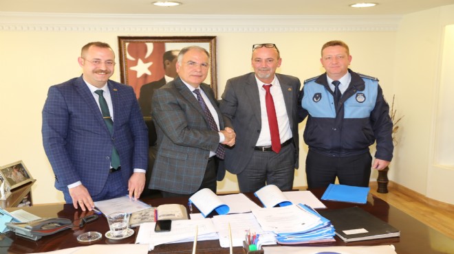 Selçuk Belediye Başkanı Dr. Dahi Zeynel Bakıcı’nın makamında gerçekleşen toplu iş sözleşmesi imza törenine Tüm Yerel Sen Genel Başkanı Dr. Hakan Kıran, Tüm Yerel – Sen İzmir 1 Nolu Şube Başkanı Bilal Altınel, Toplu İş Sözleşmesi ve Hukuk Sekreteri Ali Gültekin, İş Yeri ve Sendika Temsilcisi Sertaç Ramazan Kocaboz katıldı.