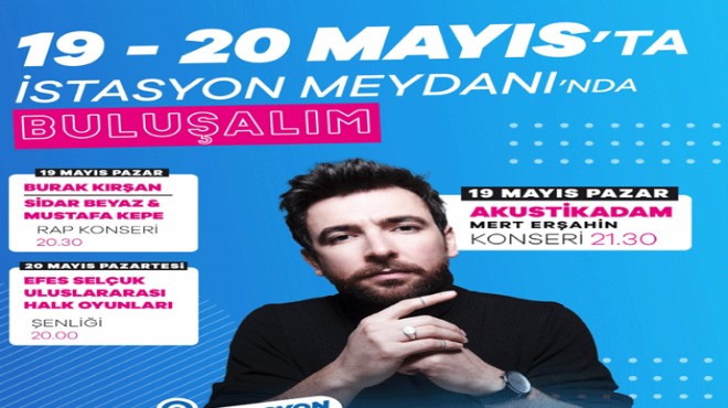 Efes Selçuk Belediyesi'nin organize ettiği etkinlikler 19-20 Mayıs tarihlerinde İstasyon Meydanı'nda gerçekleşecek. 19 Mayıs günü saat 20.30'da rap müziğin genç temsilcileri Burak Kırşan, Sidar Beyaz ve Mustafa Kepe sahne alacaklar. Aynı gün, saat 21.30'da, gençlerin sevdiği sanatçılardan Akustikadam adıyla bilinen Mert Erşahin, performans sergileyecek.