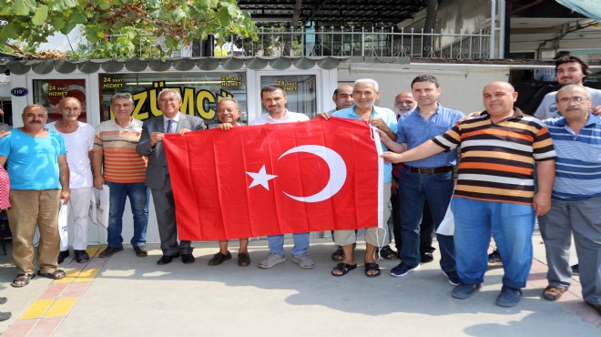 Başkan yardımcıları Ceyhan Kayhan ve Y.Güven Güngörmüş ile birlikte Yeşilyurt bölgesindeki esnafı dolaşan ve onlara hayırlı işler dileyen Başkan Selvitopu, vatandaşlarla da bol bol sohbet ederek bayrak dağıttı.
