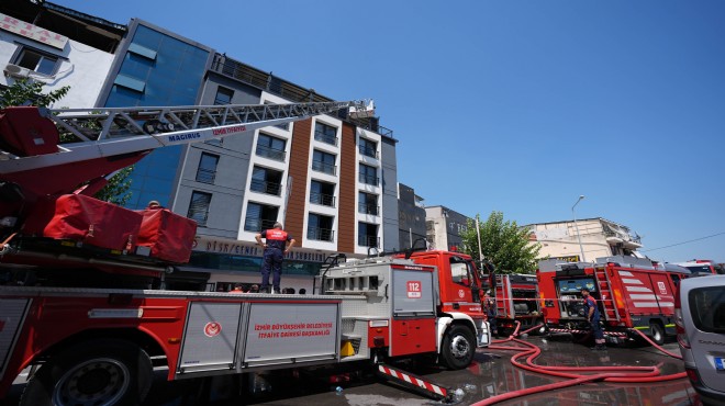 Etiler Mahallesi 1264 Sokaktaki DİSK Genel-İş Sendikası İzmir şubelerinin bulunduğu 5 katlı binada, yangın çıktı.