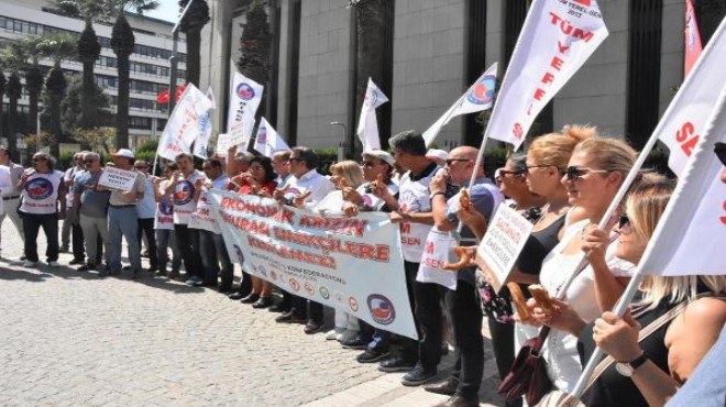 Birleşik Kamu-İş Konfederasyonu üyesi yaklaşık 30 kişilik grup, Konak Meydanı'ndaki, Merkez Bankası İzmir Şubesi önünde toplandı. Ellerinde simit tutan grup adına Birleşik Kamu-İş Konfederasyonu İzmir Bölge Temsilcisi Tamer Yiğit Güler basın açıklaması yaptı. Türkiye'nin son dönemdeki ekonomik durumuna dikkat çeken Güler, "Enflasyon oranı Ağustos ayı içerisinde yüzde 17,90'a yükselerek son 14 yılın zirvesine ulaşmıştır. Buna bağlı olarak açlık ve yoksulluk oranları, enflasyon ve dövizde yaşanan kur krizine bağlı olarak artmaya devam etmektedir. Ekonomide yaşanan daralma ve ülke siyasetinde yaşanan belirsizlikler, yıl sonunda enflasyon oranlarının yüzde 20'lere yükseleceğinin emarelerini ortaya çıkarmaktadır. TL, döviz kuru karşısında günden güne değil, artık saat başı gerilemektedir" dedi.