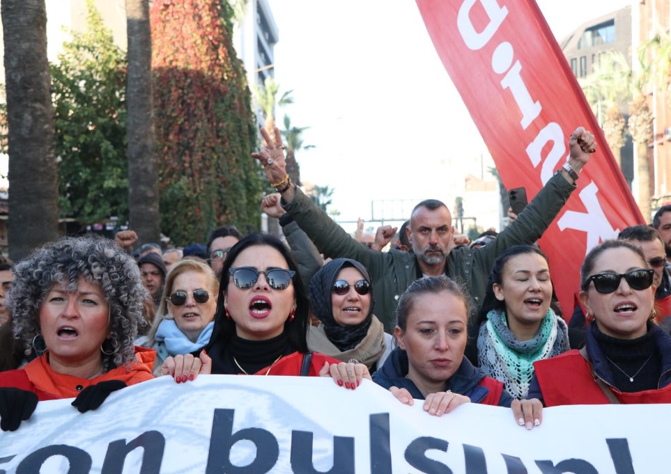 Eylemlerin dördüncü gününde işçiler yarım gün iş bırakarak Konak Pier’den Kültürpark’a yürüyüş gerçekleştirdi.