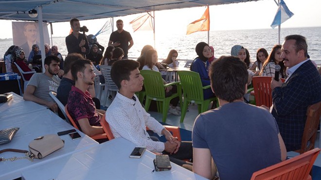 İnciraltı’ndan kalkan tekne ile Konak Pier’e kadar gelen Başkan Şengül daha sonra Bornova’da Ak Parti İzmir İl Başkanlığı tarafından düzenlenen iftara katılmak üzere ayrıldı. Gençler ise tekne ile körfez turunu ve seçim sohbetlerini geç saatlere kadar sürdürdü.