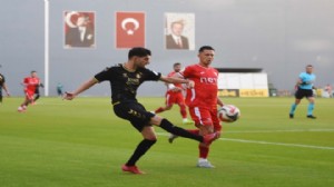 3. dakikada Ahmet Oğuz'un sağ kanattan ortasında altıpas içindeki Tayfur Bingöl'ün kafa vuruşunda, meşin yuvarlak direk dibinden auta gitti.