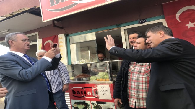Bir vatandaş, İmbatlı Mahallesi'nde esnaf ziyareti gerçekleştiren CHP Karşıyaka Belediye Başkan Adayı Dr. Cemil Tugay ve İzmir Milletvekili Atila Sertel'in yanına gelerek, Menderes'te partileri için ter döken Belediye Başkan Adayı Mustafa Kayalar'a destek mesajı göndermelerini istedi.