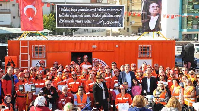 Çetin Emeç Mahallesi’ne yeni kurulan Deprem Konteynırının da açılışının yapıldığı törende bir konuşma yapan Kızılay İzmir Şube Başkanı Prof.Dr.Aslı Özer, Ulu Önder Atatürk’ün ‘Felaket başa gelmeden önleyici ve koruyucu tedbirler düşünmek lazım. Felaket geldikten sonra dövünmenin yararı yoktur’ sözünü hatırlatarak “Bu çalışma bir afet anında insan hayatını kurtarmak için yapılan en doğru çalışmadır” dedi.